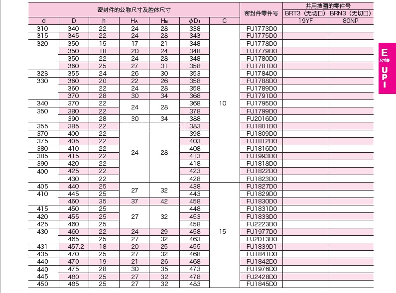 UPI 95*115*12 100*120*12 100*125*15 105*125*15 NOK油封密封圈