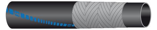 橡胶管表面连续螺旋印刷蓝色条纹“IVG Air...”。